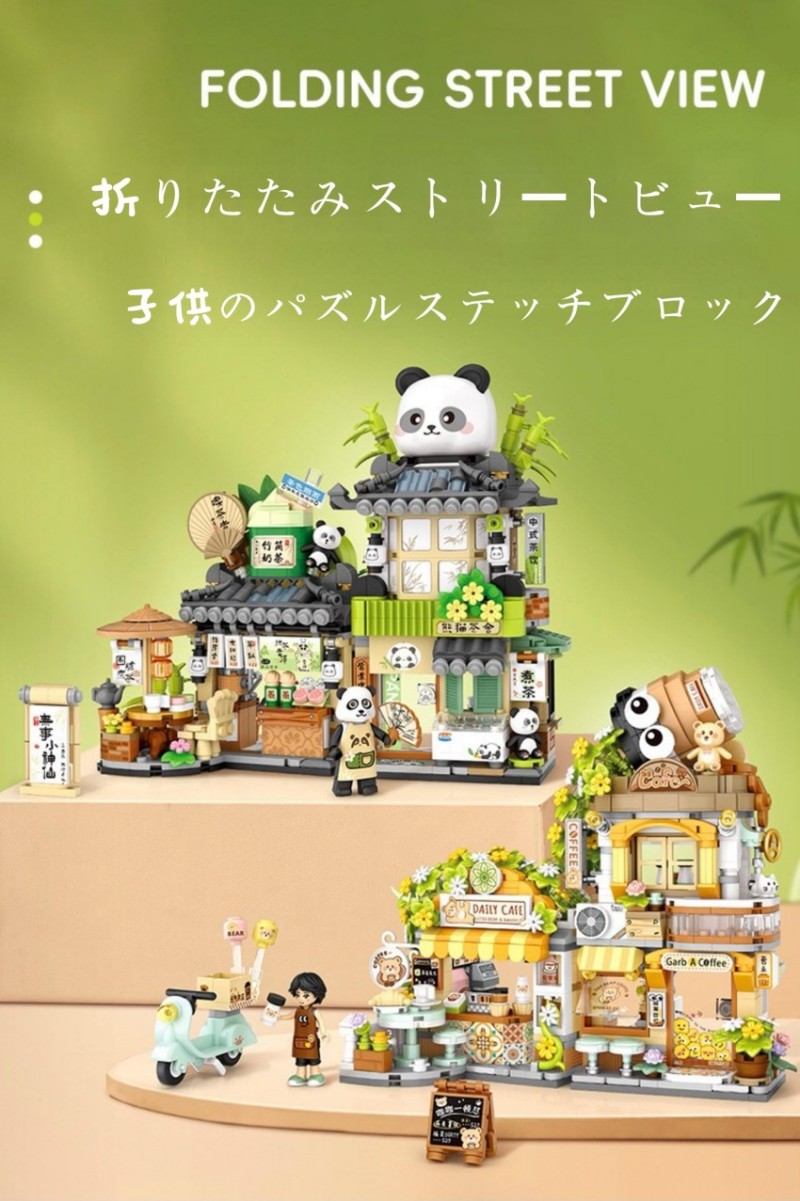 パンダ茶社小粒積み木ストリートビューカフェ積み木子供の日おもちゃプレゼントおもちゃ ブロック セット