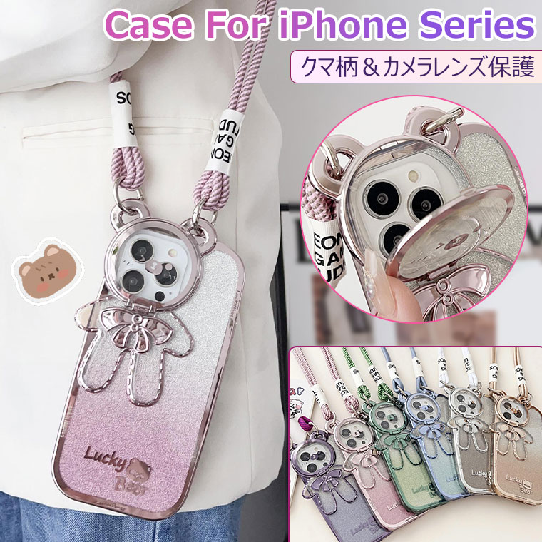 iPhone 17 Pro ケース クマ かわいい 16 おしゃれ 15 Max ショルダータイプ 可愛い iPhone14 plus カバ クリア