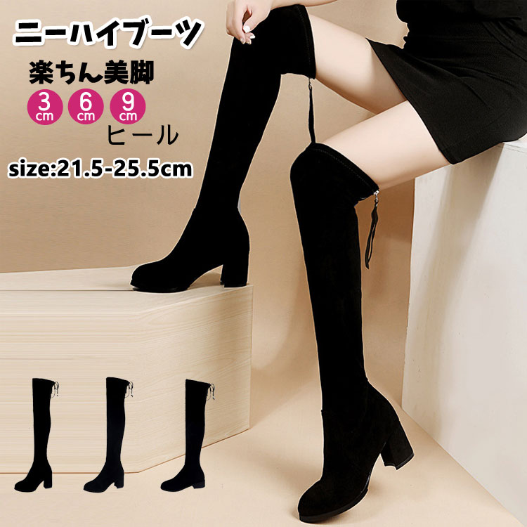 21.5 --25.5 ロングブーツ レディース ブラック 細見せ 美脚 太ヒール ベビー ファッション ショップ