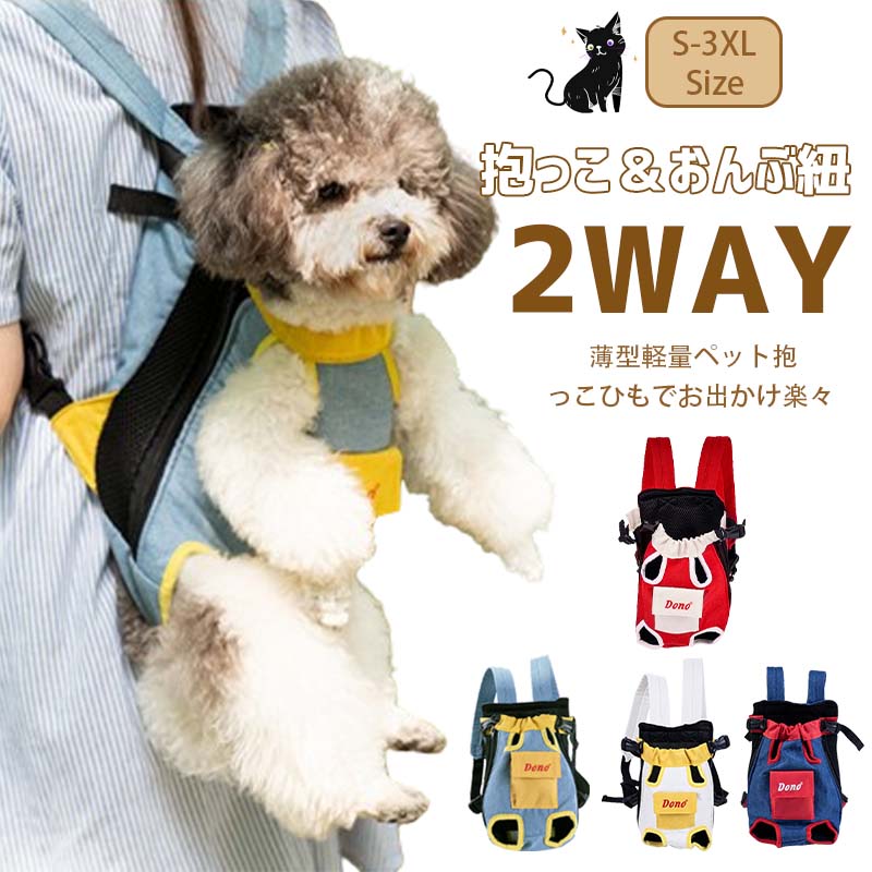 2ペット用 抱っこ紐 キャリーバッグ バック リュック型 ペット用だっこひも ペットスリング 犬抱っこ紐 犬おんぶひも 小型犬猫 中型犬猫 猫抱っこバッグ 軽量 両手解放 アウト 通気性