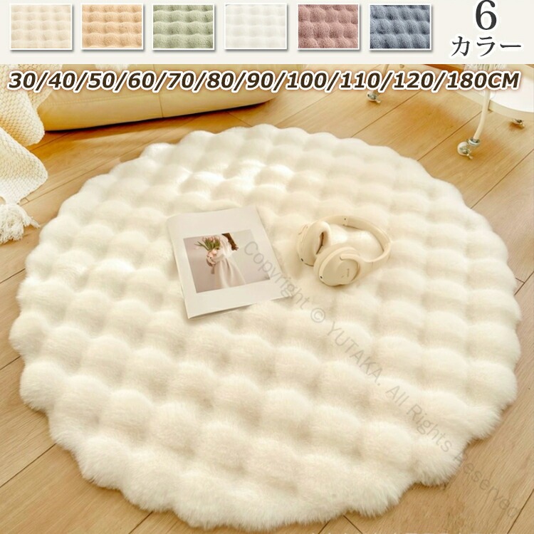 洗濯可能なふわふわフェイクファー素材で北欧風のオシャレな円形ラグ 滑り止め付きで安全 快適な厚手仕様