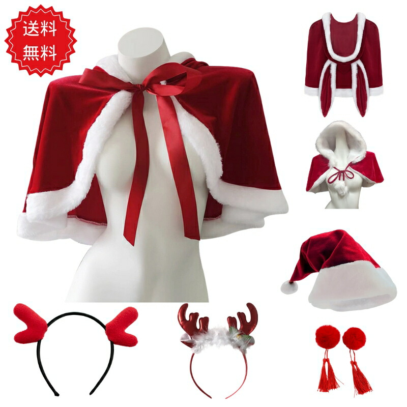 【15時前の注文は 当日発送!】サンタ帽子 サンタカチューシャ 暖かいサンタ ポンチョ マント 兎耳付きポンチョ 赤マント