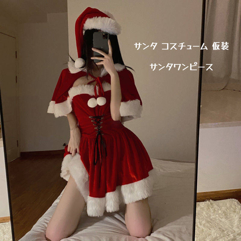 2025 クリスマス 仮装 サンタ コスプレ コス サンタコス コスチューム ケープ 大人 衣装 膝丈 ワンピース ベアトップ ミニ スカート ミニスカ かわいい 可愛い タイト エロ ク セクシー