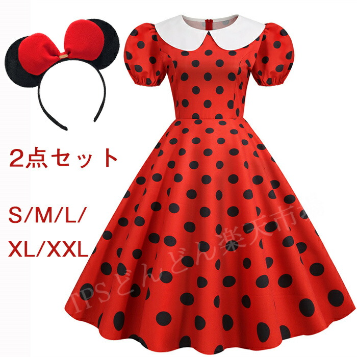 ワンピース ドレス 水玉 ドット柄 カチューシャ付き 2点セット ハロウィン レディース 可愛い コスプレ 衣装 イベント 長袖 ハロウィンコス パー コスチューム