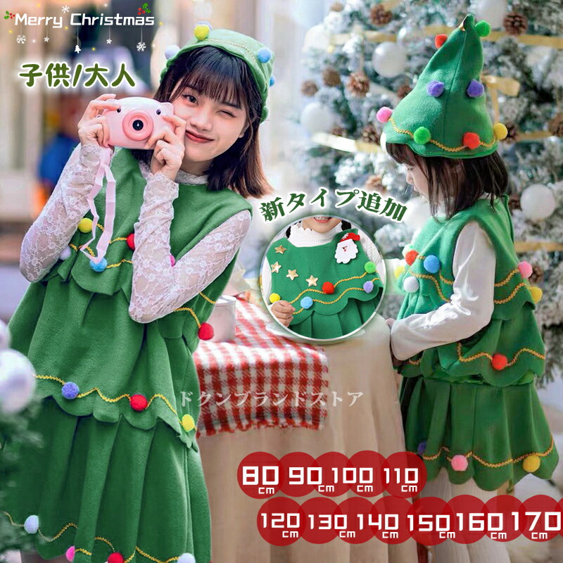 親子 サンタ クリスマスツリー コスプレ 衣装セット ワンピース 子供服 キッズ 女の子 レディース コスチューム ベビー ジュニア かわいい 保育園 幼稚園 小学生 中学生 変装 仮装 おし 高校生