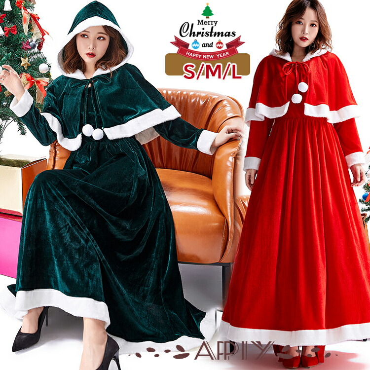 サンタ コスプレ クリスマス ワンピース 2点セット サンタコスプレ ロング 袖 大きいサイズ サンタクロース マント 仮装 レディース フード 衣装 コスチ サンタコス
