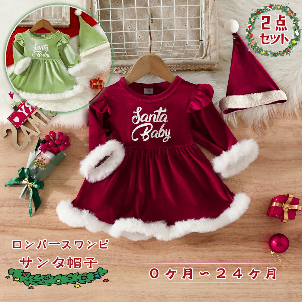 送料無料 幼児 スカート付きボディースーツ こども服 ベルベット もこもこ 可愛いサンタちゃんに変身!メリークリスマス雰囲気満載! スナップボタン おしゃれ キッズ 100日 0~2歳