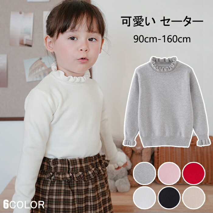 タートルネック ニット 子供服 女の子 キッズ 可愛い かわいい リブニット ハイネック リブ タートルニット インナー セーター ジュニア お洒落 秋冬 カジュアル おしゃれ フリル 春秋