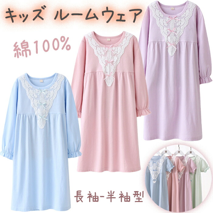 パジャマ キッズ ルームウェア 綿100% ネグリジェ ワンピース 女児 半袖 長袖 女の子 春 夏 プリンセス 子供服 ナイトドレス 部 ルームワンピース