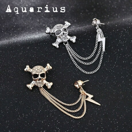スカル スワロフスキー トリプル チェーン ラペルピン 骸骨 ジュエリー アクセサリー メンズジュエリー ドクロ