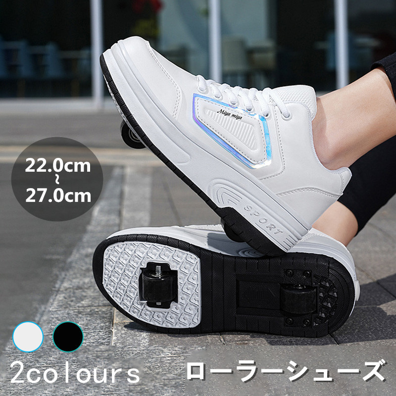 ローラーシューズ ローラースケート 2輪式 キッズ 大人 メンズ 靴 女の子 男の子 子供用運動靴 スポーツ用 男女兼用 ギフト プレゼント 前輪取外し可能後輪ワンボタン収納式 スニーカー