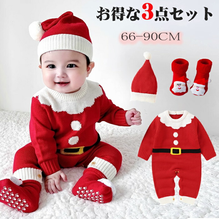 【3点セット】ベビー&キッズ用のおしゃれなコスチューム♪クリスマス コスプレ、お誕生日プレゼントにも 出産祝い ギフト お着替え簡単 クリスマス66 73 80 90