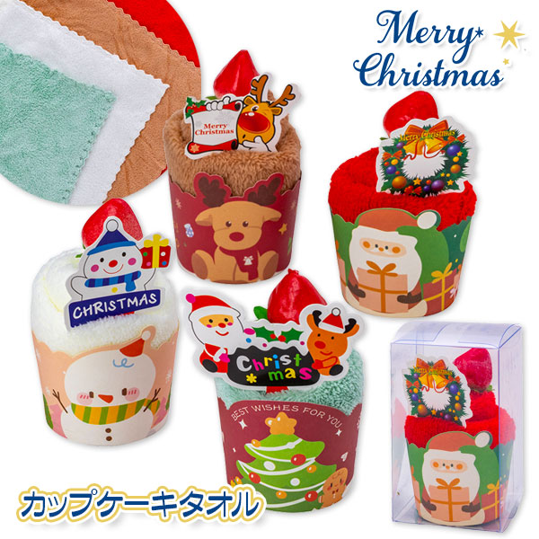 クリスマス カップケーキタオル { ハンドタオル 雑貨 衛生用品 }{ ギフト 子ども会 施設 } 誕生日