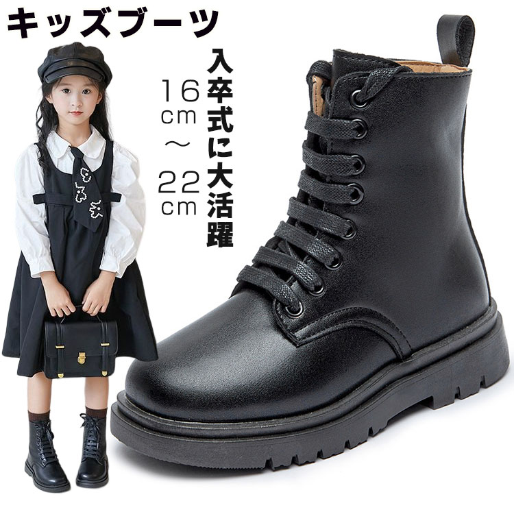 ブーツ 女の子 入園式 卒園式 入学式 歩きやすい レースアップブーツ 編み上げブーツ 革靴 靴 防水 ショートブーツ 軽量 履きやすい 疲れない 滑り止め 黒 ブラック 秋冬 春 ジュ アプリコット
