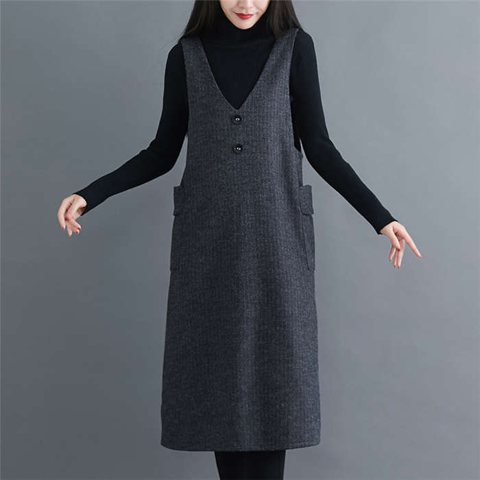 ジャンパースカート 秋 冬 50代 ロング 大人 ワンピース レディース Vネック コンビネゾン ジャンスカ ボタン ポケット ストライプ ツイード オールインワン タンクワンピース 重 スカート