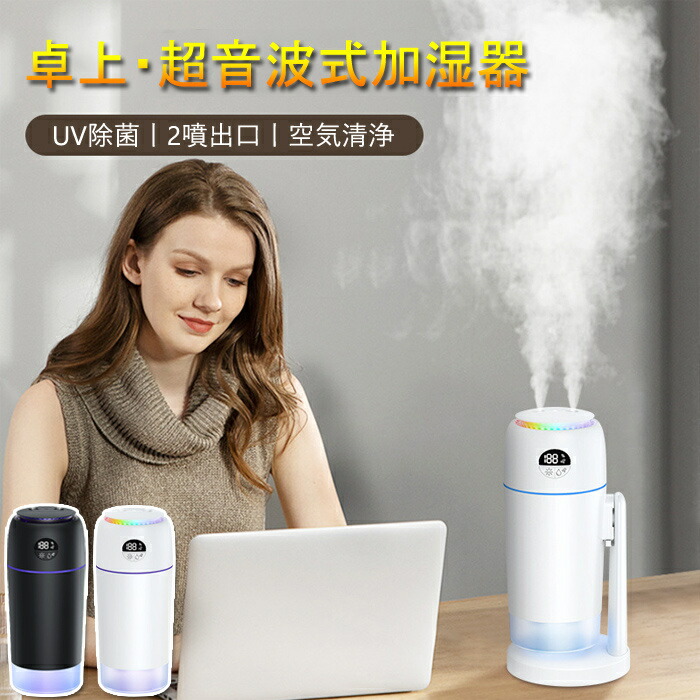 加湿器 充電式 ダブル噴霧 2 8hタイマー 超音波式 大容量 高級 ミスト マイナスイオン 次亜塩素酸水対応 コードレス 卓上 ライト 部屋 車載 静音