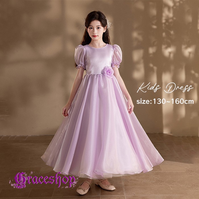 ドレス 子供 発表会 演奏会 パープル 紫 結婚式 女の子 ジュニア ピアノ発表会 130 140 150 160 フォーマル