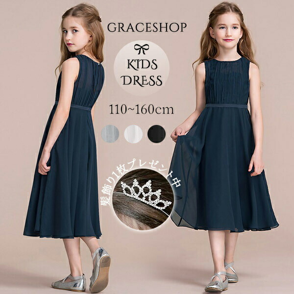 ピアノ発表会 ワンピース 女の子 ドレス シフォン 夏 ミモレ丈 中学生 子供 フォーマル 卒業式ノースリーブ ジュニアドレス シンプル キッズドレス パーティー ネイビー ブラック 紺 白 グレ 黒