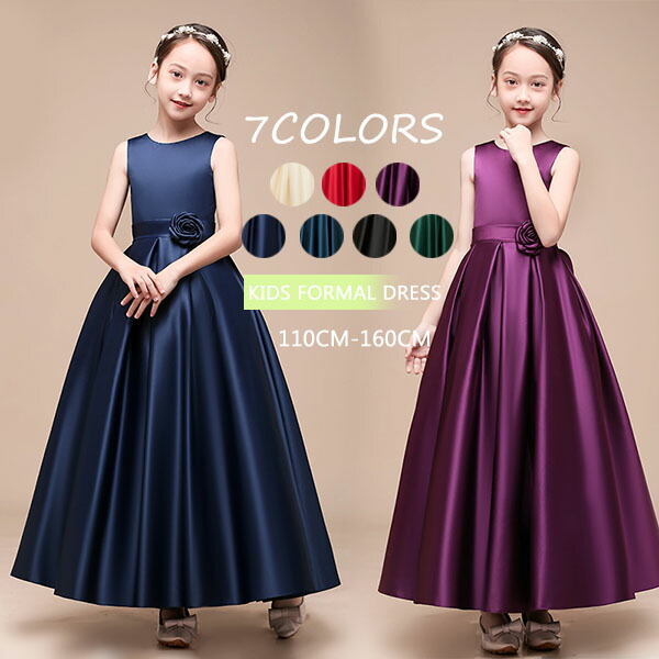子供ドレス ワンピース ロングドレス ピアノ発表会 子供 ドレス 女の子 フォーマル サテン フォーマルドレス パーティードレス 結婚式 七五三 発表会 フラワーガール キッズドレス