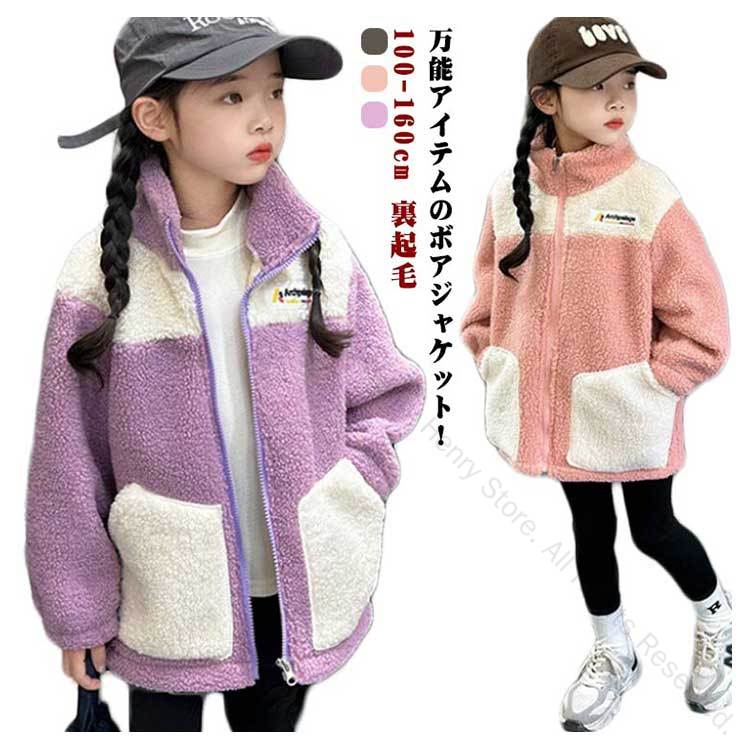 子供 アウター キッズ ボアジャケット もこもこ ふわふわ ジュニア 秋冬 フリースジャケット 裏起毛 女の子 男の子 冬用 ボアブルゾン 配色 防寒 トップス あったか 保温性抜群 おし ジャンパー