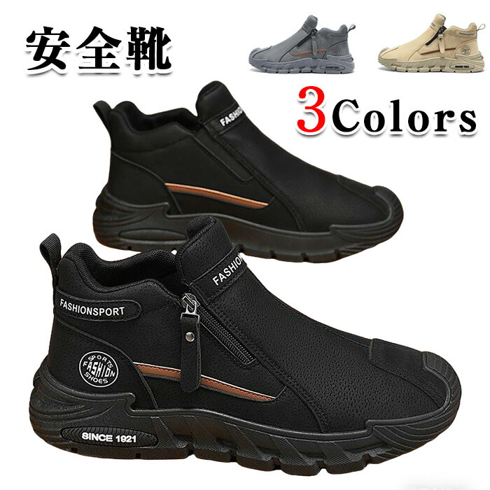 安全靴 作業靴 メンズ防水カジュアルシューズ シークレットシューズ メンズ ファスナー付き 軽量 疲れない 滑り止め設計 耐摩耗性 ハイカット 通勤 ハイキング シューズ カジュ トレッキングシューズ