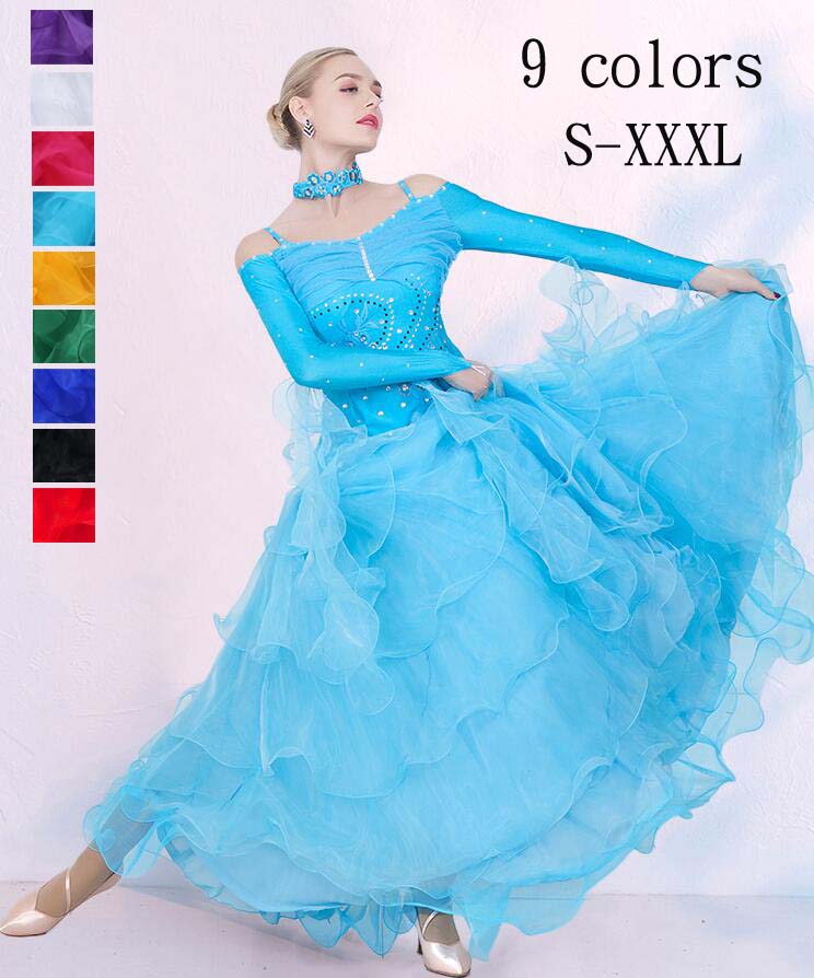 上品 4色 社交ダンス衣装 豪華な社交ダンスドレス 大きい裾 ダンス発表会 社交ダンス モダンドレス 刺繍 ドレス 競技着 練習着 スタンダードドレス ワルツダンス ダンス 演出用